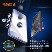 【硬度9H・耐衝撃】日本旭硝子素材を採用し、表面硬度9Hの最高強度のガラスを使用しています。万が一スマホが落ちてガラスが割れた場合でも、ガラスの破片が飛び散りにくい設計です。飛散防止加工が施されており、ガラスの破片から守ります。