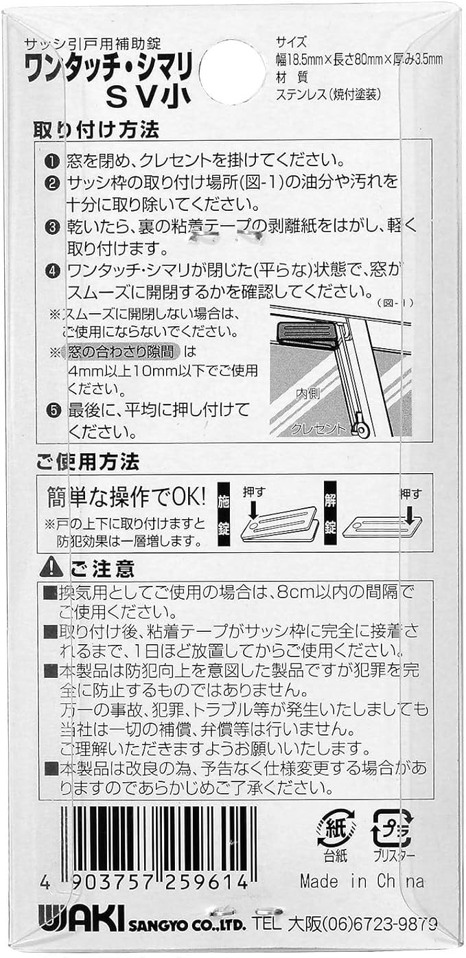 和気産業(Waki Sangyo) 補助錠 サッシ ロック 防犯 災害 避難 ワンタッチシマリ シルバー 小 1枚入