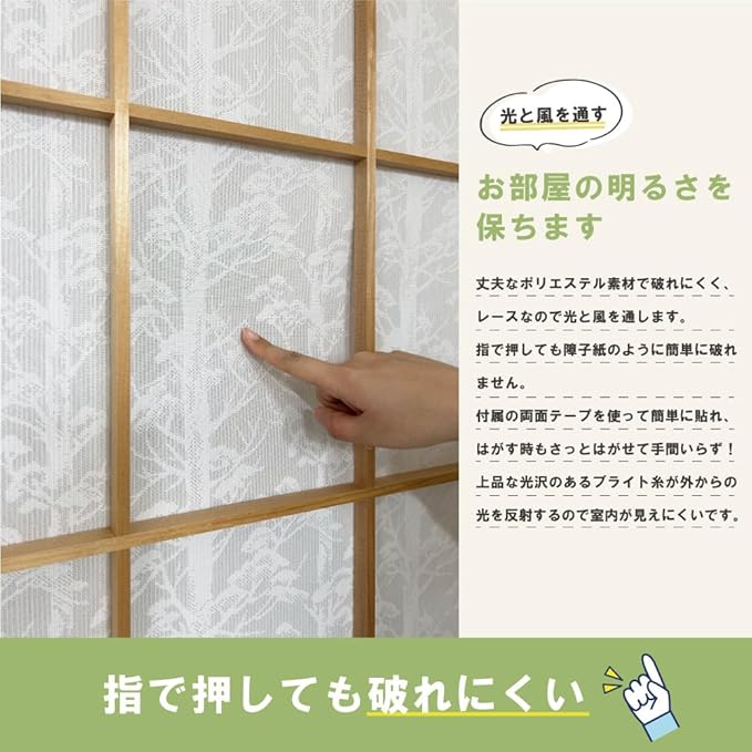 カエイレース(Kaei-lace) 【障子に貼るレース 森林 2枚入り】33013 破れない障子紙 遮熱 花粉キャッチ 断熱 採光性 通気性 作業簡単 日本製