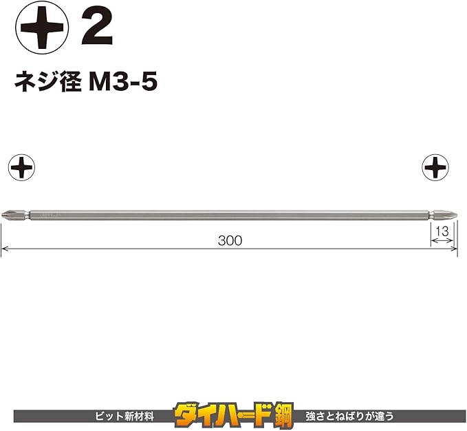 ●ビット材はダイハード鋼(最高硬度HRC62)を使用。強く、しなやかなで耐久性は抜群。