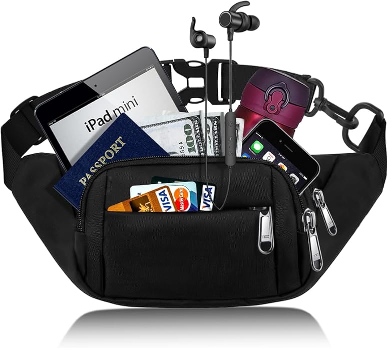 【最新版・揺れにくい】ウエストポーチのポケットが4つ付属。最大7.9インチiPad或いは6.6インチの携帯電話が入れられます。550mlペットボトル、長財布、傘、現金、ドリンク、鍵、ジェル等などの必要品を分けて収納でき、体にフィットして、ランニング中も揺れにくいです。ランニングの途中で水分補給が必要な人にもぴったりです。