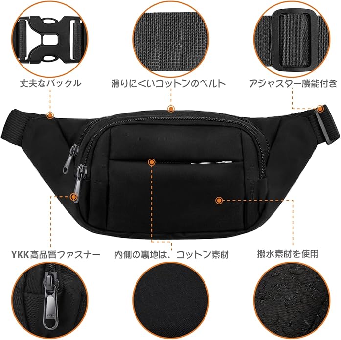 [HOUSMART] ウエストポーチ メンズ レディース ウエストバッグ ランニング ポーチ YKKファスナー 収納力 デジカメ/ipad mini7.9インチ/iPhone 7 Plus/ペット ボトルまで 旅行 ランニング 仕事 作業用 4ポケット 軽量