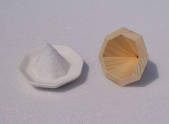 サイズ(外寸):約高さ5.2cm 巾5.7cm / (内寸):約高さ4.1cm 巾3.6cmの盛り塩がつくることができます。