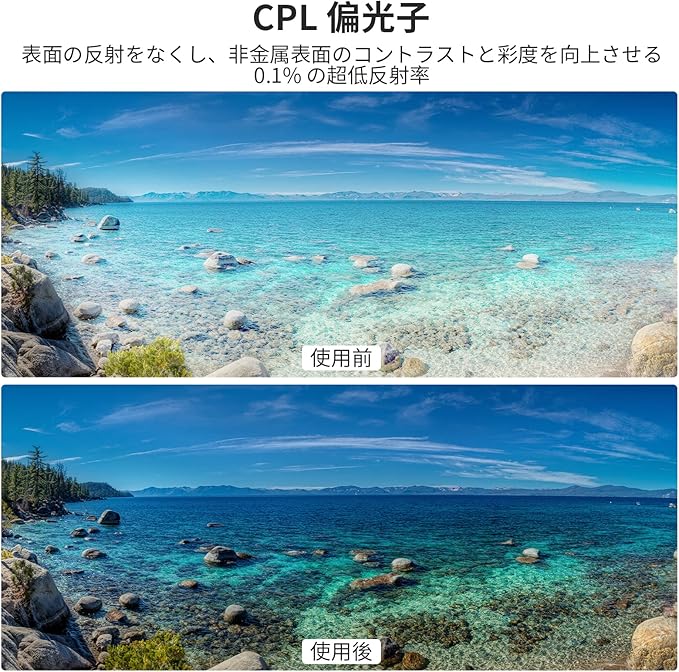 【まぶしさを抑え、色彩を鮮やかに】円偏光フィルターは、ガラスや水面など非金属表面からの反射やギラツキを効果的に抑え、画像の彩度とコントラストを高め、鮮やかな写真を撮影します。