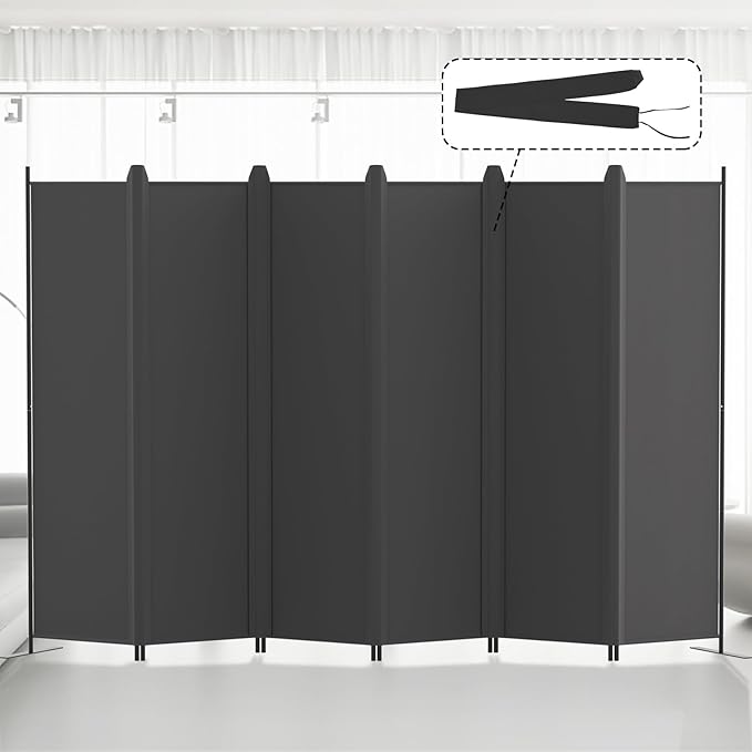 Kokorona パーテーション 間仕切り 6連 カバーストリップ付き 高さ183cm 幅305cm 衝立パーテーション スクリーン 折りたたみ 布タイプ 屏風 目隠し 区切り 衝立 軽量 オフィス 事務所 グレー