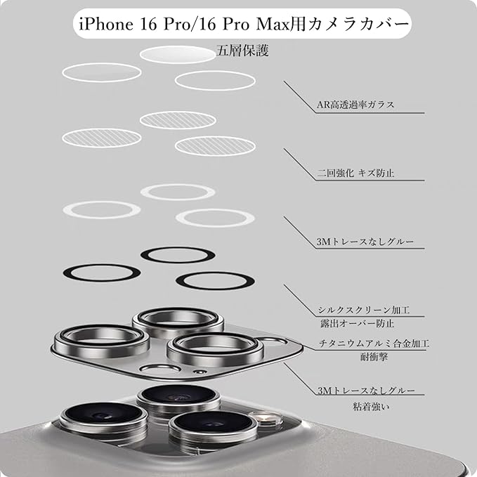 Apapeya カメラレンズカバー iPhone 16 Pro/16 Pro Max 用カメラフィルム アルミ合金製 レンズ保護 一体型 アイフォン16プロ / 16プロマックス対応 カメラ保護カバー 耐衝撃 高透過率ガラス スクラッチ防止・露出オーバー防止・ケースに干涉なし(1枚) 2024チタニウム