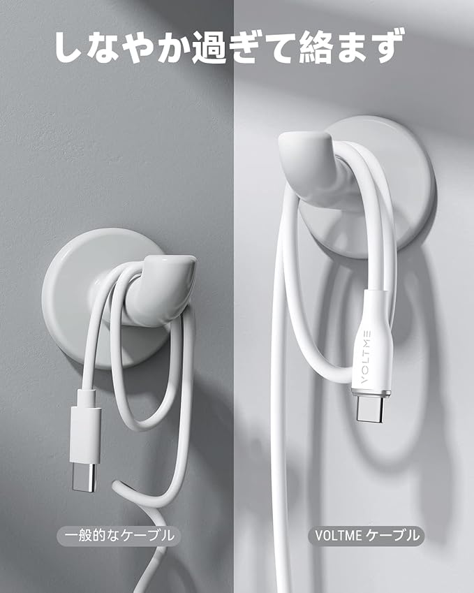 【丈夫かつ柔らかいシリコンusb ケーブル】外装にシリコン素材を使用したことで、従来のケーブルにはない柔らかい質感を実現し、カバンやポケットに入れても絡みにくいです。更に2,5000回の折り曲げテストを実施し、断線しにくく、長く利用できる高い耐久性のusb-c ケーブルです。