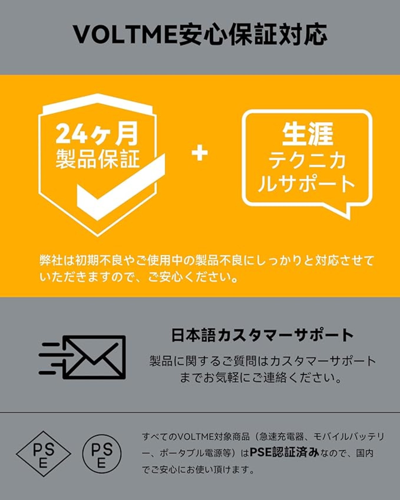 【24ヶ月保証】VOLTME USB-A to USB-C ケーブル、保証期間は購入より24ヶ月間です。