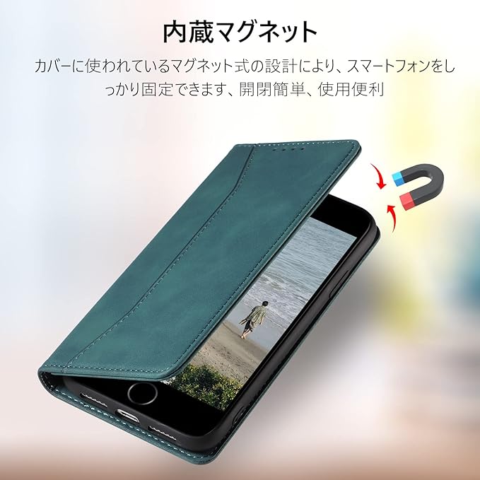 KWATUNG iphone se3 ケース 手帳型 iphone se2 ケース 手帳型 iphone7 iphone8 おしゃれシンプル 肌感レザー 内蔵マグネット 耐衝撃 全面保護 アイホンSE3 iphone SE2022 カバー手帳型 4.7インチ ターコイズ