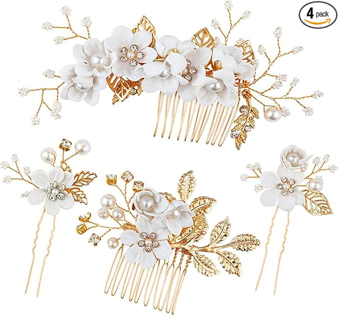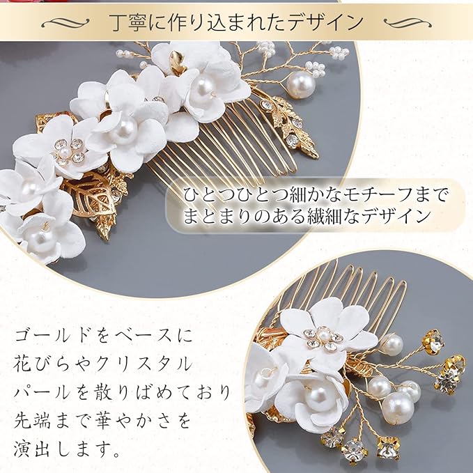 NYSh ヘアアクセサリー 髪飾り コーム Uピン ウェディング 卒業式 和装 (ホワイト)