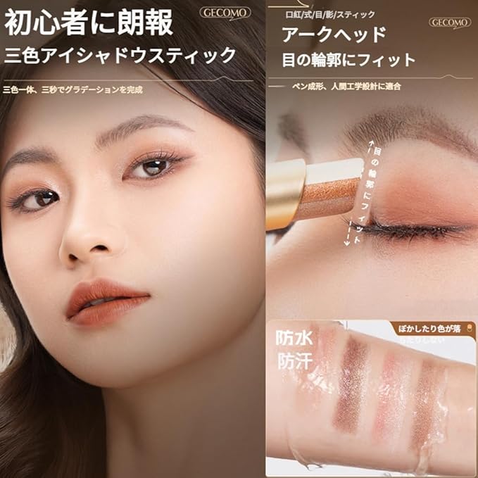 【コントロールしやすい】アイシャドウパレットやアイシャドウクリームと比べて、アイシャドウスティックの形状と質感により、量と塗布範囲のコントロールが簡単です。アイシャドウの飛散やムラの汚れなどのトラブルが起きにくく、メイク初心者でも簡単にコントロールできます。