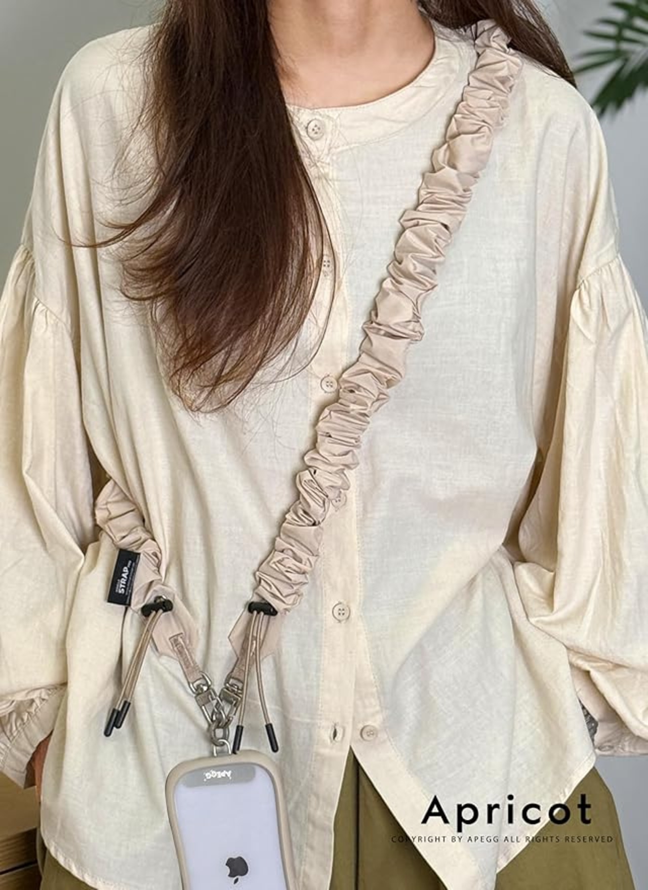 [APEGG] スマホ ショルダーストラップ 360 回転金具付き 長さ調整可能 ドローストリングデザイン スマホストラップ 斜めがけ 肩掛け 首掛け 落下防止 携帯ストラップ ショルダーベルト レディース 全機種対応 可愛い おしゃれ Apricot