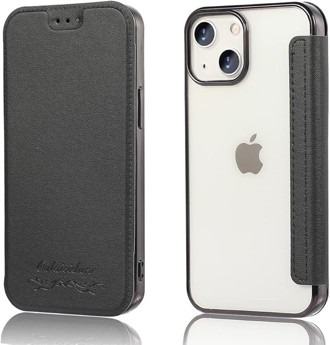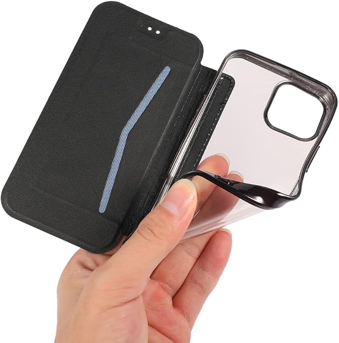 MuZiF iPhone14 用 手帳型ケース クリア 高級なPUレザー 耐衝撃性と耐摩耗性 14用 全面保護耐衝撃、カード収納、カバー 軽量 アイフォン14 用 手帳カバー (iPhone 14,ブラック)