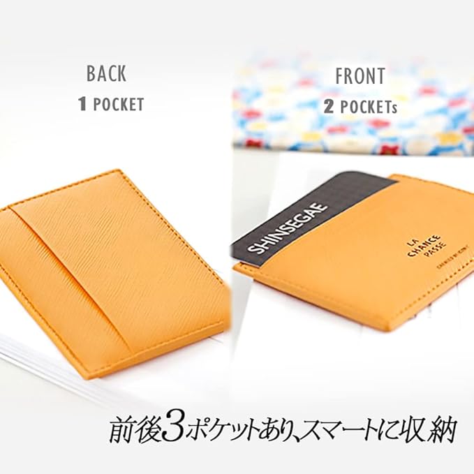 SUNNY レザーカードケース 薄型 シンプル 両面 定期券 診察券 保健証 会員カード クレカ ミニウォレット スリム 3つポケット オレンジ LCPCC100-OR-SNY