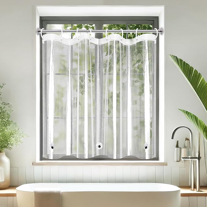 AooHome 浴室窓カーテン シャワーカーテン 小窓 透明 防寒 保温 冬夏 EVA材質 目隠し 防水 ミニ 短め 防カビ ユニットバス お風呂場 50cm丈 カフェカーテン クリア リング付き 取付簡単