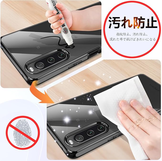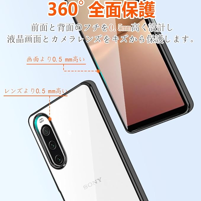 【スタイリッシュな外観】背面部分が透過デザインでxperia10v本体のカラーや質感を損ないません.本体とピッタリ密着して違和感がない一体感がすごく格好いいです.背面が透明感の高さにより、xperia10v の美しさをそのまま楽しむことが出来ます.