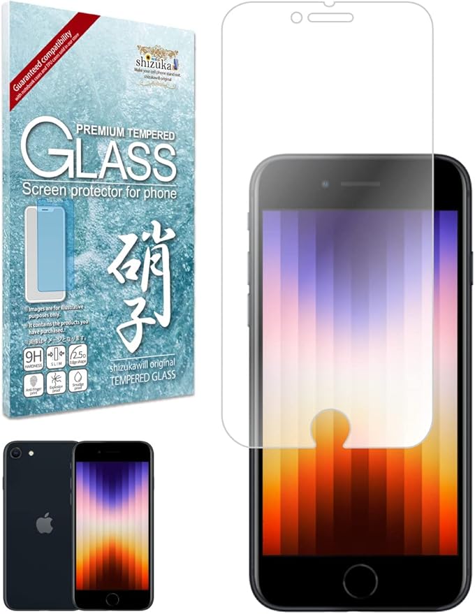 シズカウィル iPhoneSE 第3世代 2022 用 第2世代 2020 用 ガラスフィルム 強化ガラス 気泡レス 保護フィルム フィルム 反射防止 アンチグレア 液晶保護フィルム 1枚入り