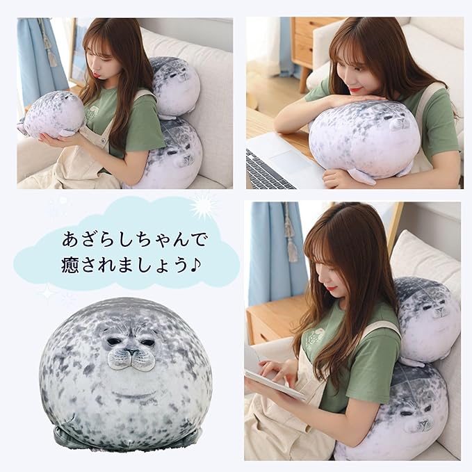 【ユニークなデザイン】リアルな見た目をしたアザラシクッションです!可愛い表情と存在感に見ているだけで癒される。お部屋のワンポイントにいかがですか?
