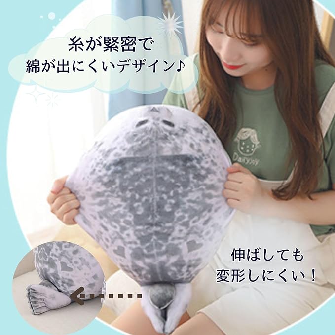 EU SOU アザラシ 抱き枕 クッション ぬいぐるみ リアル 動物 ふわふわ もちもち 添い寝枕 昼寝枕 (グレー, 60cm)