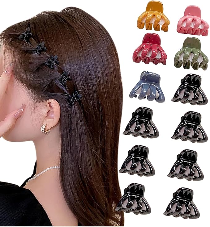 [Herbeluemily] ヘアクリップ ミニクリップ バンスクリップ 12個セット 前髪クリップ プレーン Fセット ニュアンスカラー HM-0049-R02-Fset