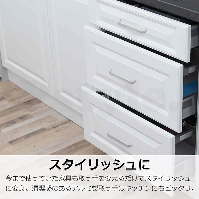 【インテリアがスタイリッシュに】 今まで使っていた家具も取っ手を変えるだけでスタイリッシュに変身。清潔感があるメタル製の取っ手はキッチンや引き出し、クローゼット、タンス、食器棚にもピッタリです。