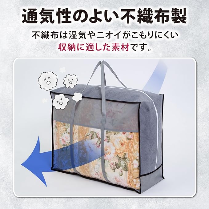 通気性が良くホコリを通しにくい生地のため、衣類や寝具の収納に適しています。
