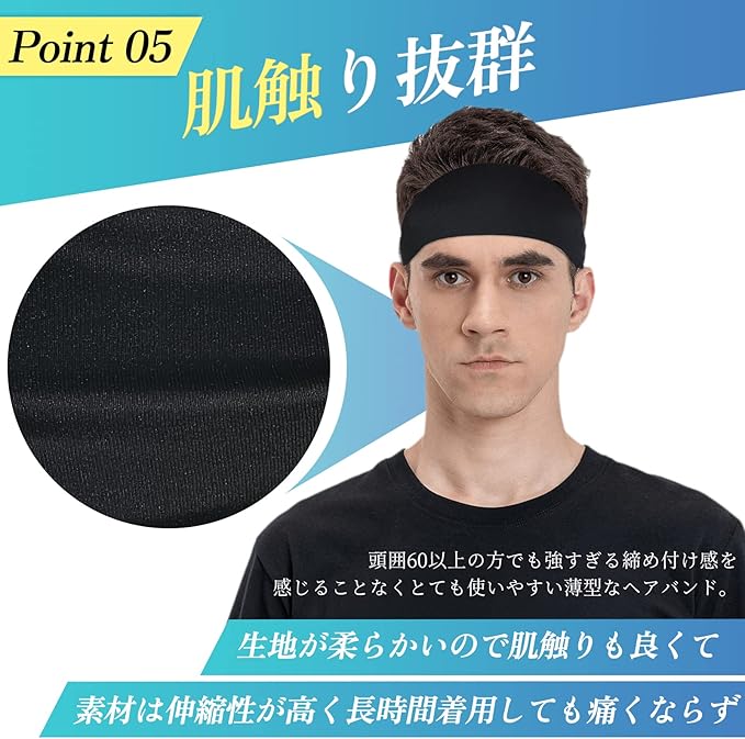 ✅【ヘアバンド仕様】材質:ポリエステル 88.7% スパンデックス11.3% ターバン約24.5cm長、約11.5cm額幅 「額部分幅約11.5cm:後頭部分幅約3㎝」 額部分の面積が広く、吸水性が抜群なヘアバンド。