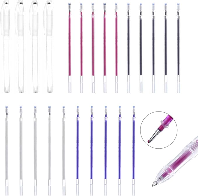 【保管が簡単】:熱で消えるは4色がお揃い、布の色に合わせてペンの色を使い分けることができとても便利です。追加のリフィルには安全キャップが付いています。これらのリフィルは、使用しないときは簡単に保管できます。