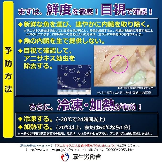 目視では発見しにくい魚介類の内臓に潜む寄生虫アニサキスの発見を補助する特殊なライト!ライト照らして目視で確認することは厚生労働省も推奨!