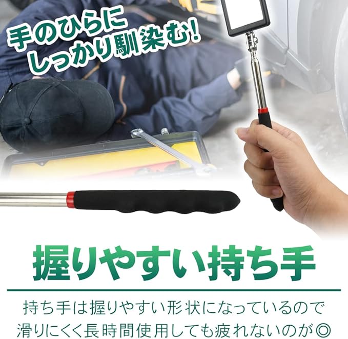 伸縮式点検鏡 棒付きミラー 点検ミラー 角度調整可能 LEDライト付き 握りやすい 施工 点検 修理 (2個)