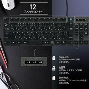 ◆日本語108キー+5ファンクションキー ◆テンキー付きフルキーボードで作業効率アップ ◆専用ドライバなどのインストール不要、USBポートに挿すだけでパソコン接続 ◆19mmキーピッチ、3mmキーストローク ◆本体カラーはブラック