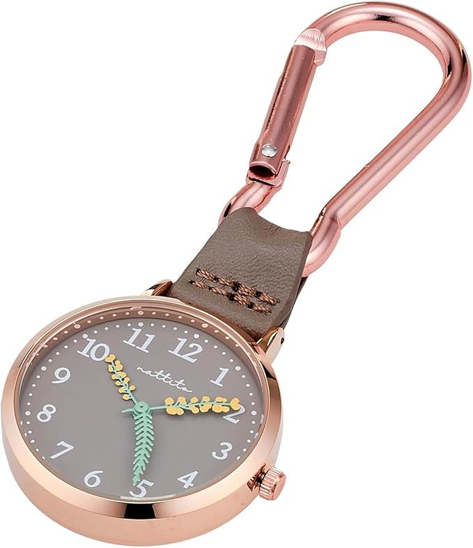 お花モチーフの秒針が可愛い。バッグなどに引っ掛けて使うカラビナウォッチ