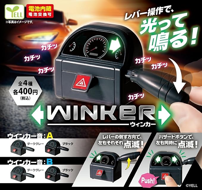 エール ウィンカー 全4種セット フルコンプ ガチャガチャ カプセルトイ ウインカー音:A <1> ダークグレー <2>ブラック ウインカー音:B <3>ダークグレー <4>ブラック