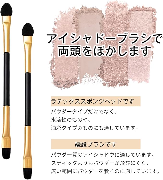 【デュアルエンドのアイシャドウブラシ】アイシャドウブラシ ラテックススポンジのヘッドで、ソフトなタッチで均一なスマッジングが可能。 パウダーアイシャドウだけでなく、水溶性やオイルカラーなどのアイシャドウにも適しています。 細い合成繊維毛のブラシヘッドで、ソフトで強力なパウダーグリップ。