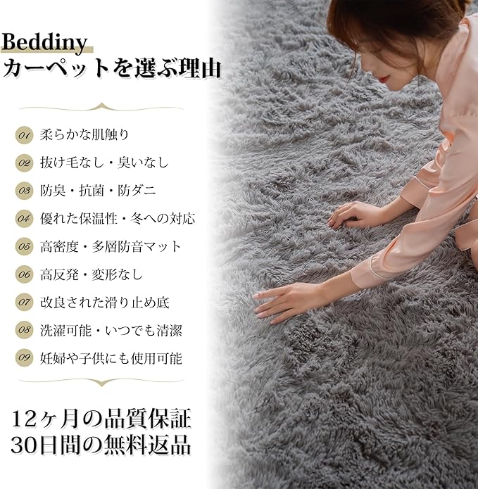Beddiny カーペット ラグ ラグマット 洗えるラグ【中層:極厚30D高密度ウレタン 独自技術の抗菌防臭加工】絨毯 オールシーズン快適に使用 滑り止め付き 高密度シャギーラグ ピンク パープル ホワイト 120 160cm
