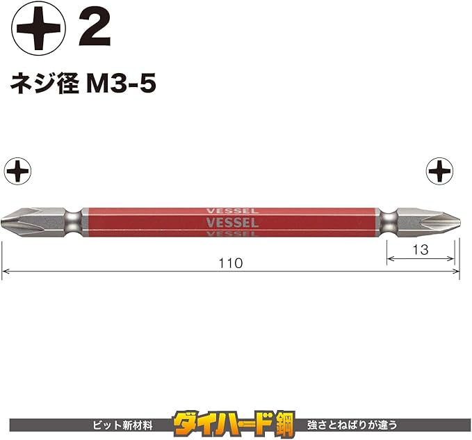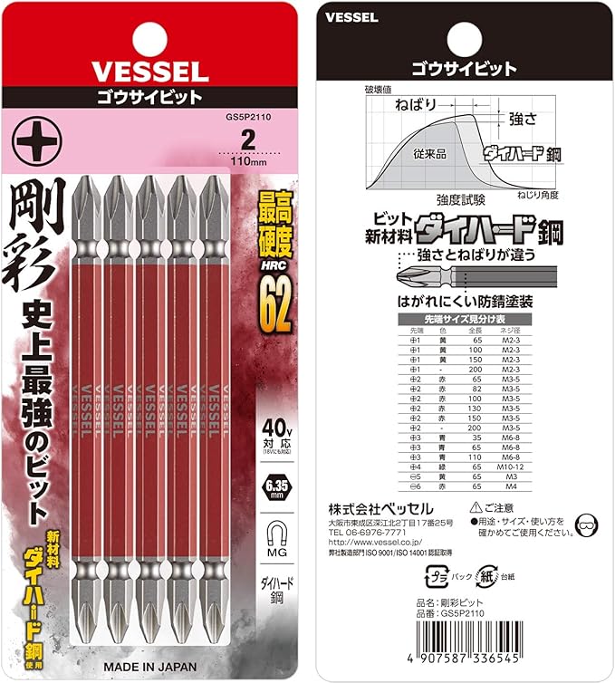 ベッセル(VESSEL) 40V対応 両頭プラス 剛彩ビット +2 110 5本組 GS5P2110