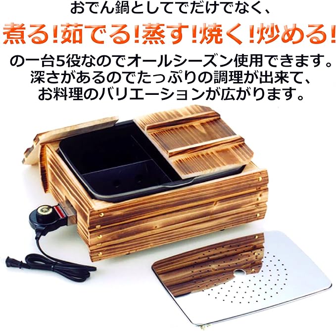 ●おでん鍋として使えるほか、煮る・茹でる・蒸す・炒めるの1台5役オールシーズン使用できます