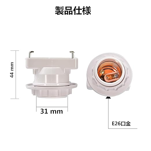 Uplight 引き掛けシーリング用 電球ソケット E26口金対応 ランプソケット 工事不要 取り付け簡単 角型引掛シーリングアダプター 白い 5個セット