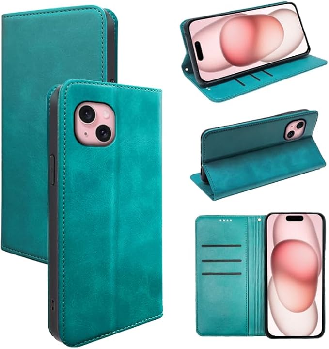 linlingo 手帳型 に適用するiPhone15対応 ケース 手帳型 手帳型ケース カバー PUレザー カード収納 財布型 耐衝撃 ケース マグネット スタンド機能付き (グリーン)