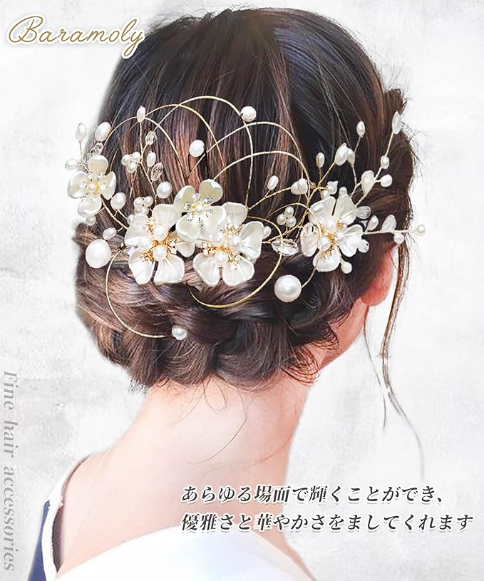 【Baramoly】髪飾り 結婚式 パール 成人式 金箔 振袖 前撮り 卒業式 結婚式 水引 入学式 豪華な着物 可愛いヘアアクセサリー 9色展開