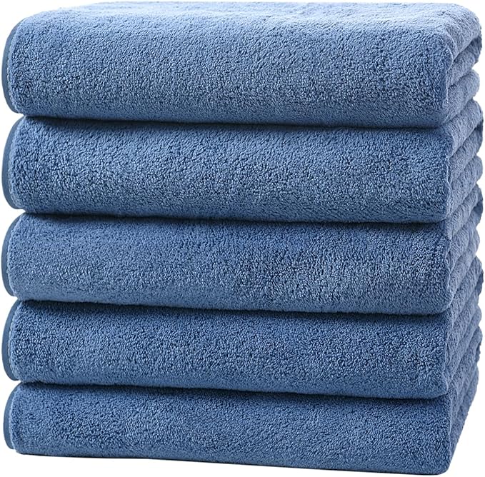 バスタオル マイクロファイバー タオル 5枚セット 大判 ホテル仕様 柔らか肌触り 高速吸水 速乾 耐久性 人気 家庭用 業務用 (ブルー, 60X120cm)