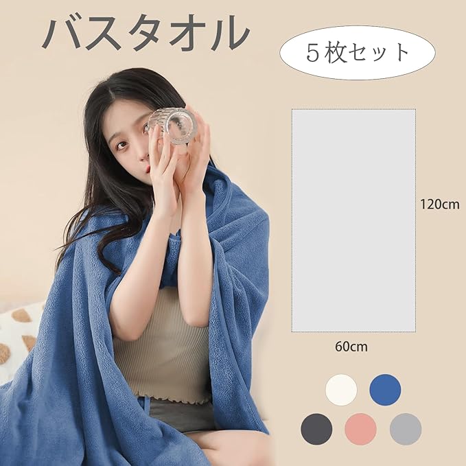 【バスタオル 5枚セット】材質:マイクロファイバー ・サイズ:約60 120cm ・カラー:、ブルー 内容:5枚セット・用途:バスタオル、プールタオル、ひざ掛けなど