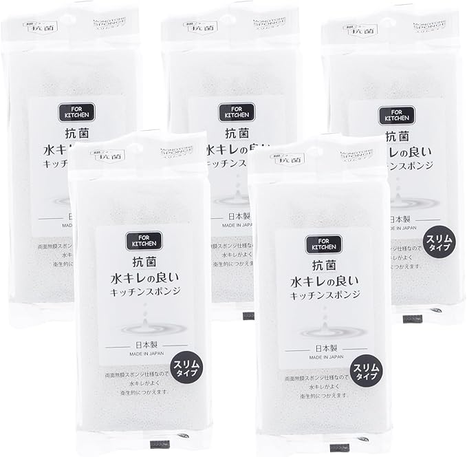 プラス・ワン スポンジ 水キレの良いキッチンスポンジ スリム 1個入 5セット 約6 12 3.6cm(1個あたり) 日本製 モノトーン