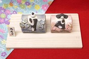 サイズ:男雛:全長5 幅7cm 女雛:全長4 幅5.5㎝・板寸縦10.5 横18㎝