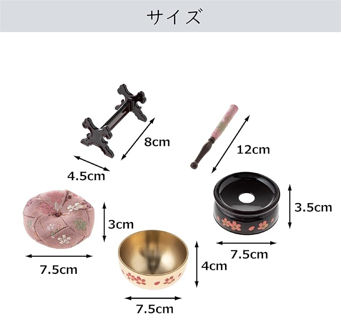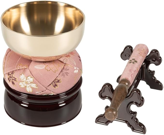 サンメニー おりん セット 本格 お手軽 2.5寸 日本製 りん 仏壇りん 現代 仏具 小さい 可愛い 桜 ピンク 毎日のお供え お参りに 手元供養 ペット 供養 狭い スペース にも 真鍮 ブラス 製 凛 とした 音色 リラックス に りん直径7.5 高さ10cm [Sunmany]