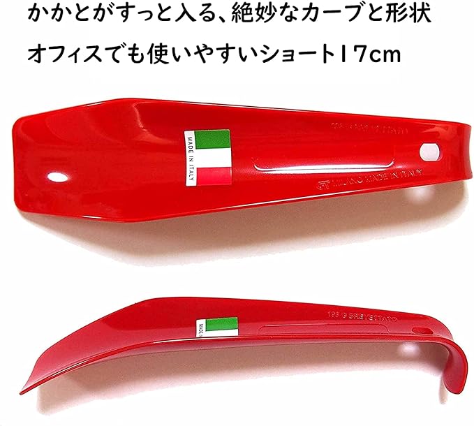 靴べら イタリア製 ロング 60cm & 携帯 ショート 17cm 大小 セット おしゃれ デザイン 軽量 プラスチック シューホーン レッド ロング&ショート
