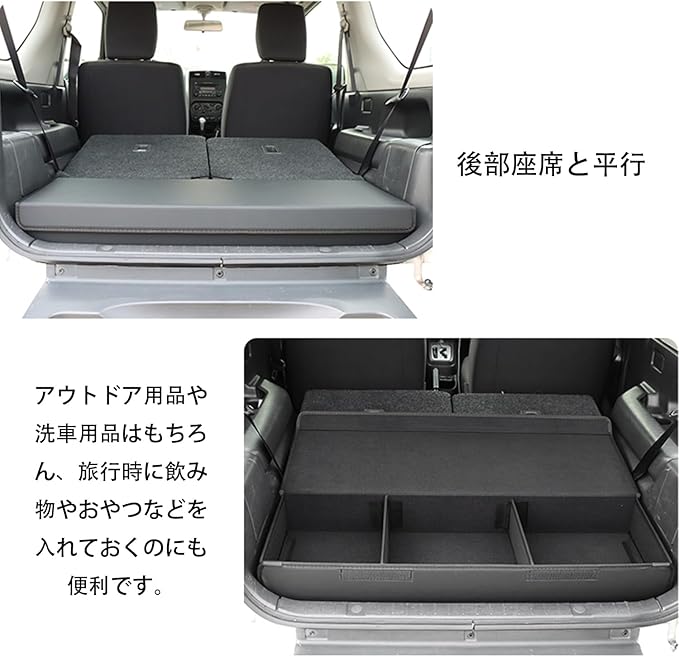 ️【後部座席とフラット配置・車中泊にも最適】 リアシートを倒すと本製品とフラットに並び、滑り止めマット「当店販売中」と組み合わせれば、車中泊時の快適性も大幅に向上します。