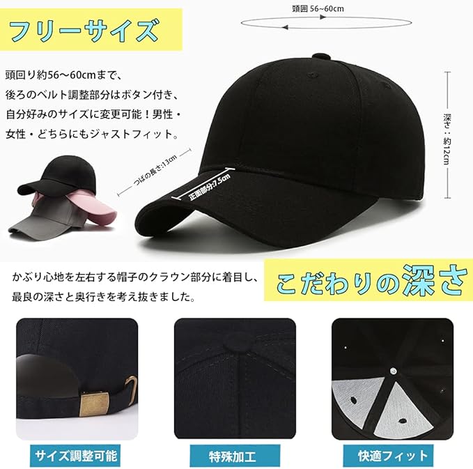 [WONEY] キャップ メンズ レディース【コットン100%】 無地 日よけ野球帽 紫外線対策 通気性 調節可能 シンプル おしゃれ ぼうし 登山 釣り ゴルフ 運転 ランニング ジョギング アウトドアなどに 男女兼用