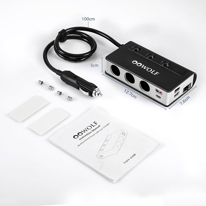 【対応車種】12V-24Vの車にすべて対応します。国産車、輸入車、外車、日本車、12Vの車、24Vの車。パッケージ内容:3連シガーソケット 1、交換ヒューズ 2、マジックバンド 1、3Mテープ 2、日本語説明書 1。OOWOLFシガーソケットは世界品質基準認証であるRoHS、CE、FCC認証を獲得済みです。【1年保証】お買い上げ日より365日間安心保証を提供し、不具合などがありましたら即交換します。