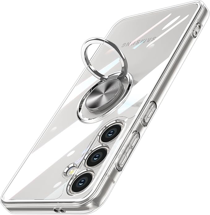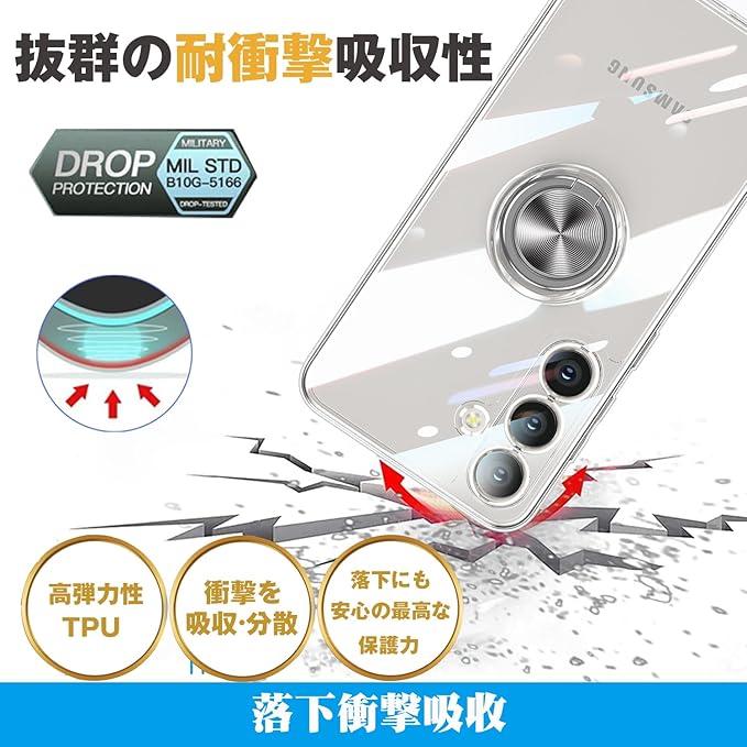 Galaxy S24 用 ケース クリア リング付き Samsung ギャラクシー S24 / SC-51E / SCG25 カバー 透明 おしゃれ OURJOY スマホケース メッキ加工 ソフトケース 耐衝撃 軽量 薄型 ストラップホール付き スタンド機能 車載ホルダー対応 携帯ケース・クリア